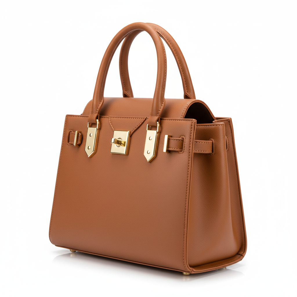 The Tan Brown Leather Handbag combines elegance and practicality in one classic design. Made from high-quality PU leather, it features a smooth finish with fine stitching and durable gold-tone hardware.